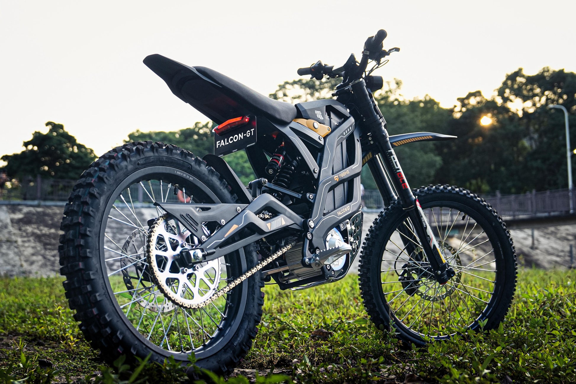 The 79Bike Falcon GT is the pinnacle of electric dirt bike engineering, designed for riders who demand precision, power, and customization. Equipped with a 16.8 kW peak motor, it delivers exhilarating acceleration and a top speed of 95 km/h. The 72V 40Ah Samsung battery ensures a range of up to 120 km, making it ideal for both trail adventures and daily commutes. A standout feature is the OLED display, providing real-time data on speed, battery status, and ride modes. The tunable controller allows riders to adjust power delivery to suit different terrains and riding styles, while the regenerative throttle enhances efficiency by converting braking energy back into the battery. With its rugged design, including 19-inch front and 18-inch rear tires, and full suspension system, the Falcon GT offers exceptional handling and comfort on various terrains.